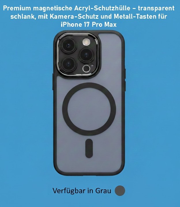 Premium magnetische Acryl-Schutzhülle – transparent, schlank mit Kamera-Schutz und Metall-Tasten für iPhone 17 Pro Max